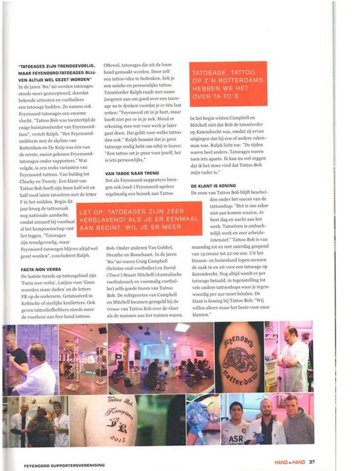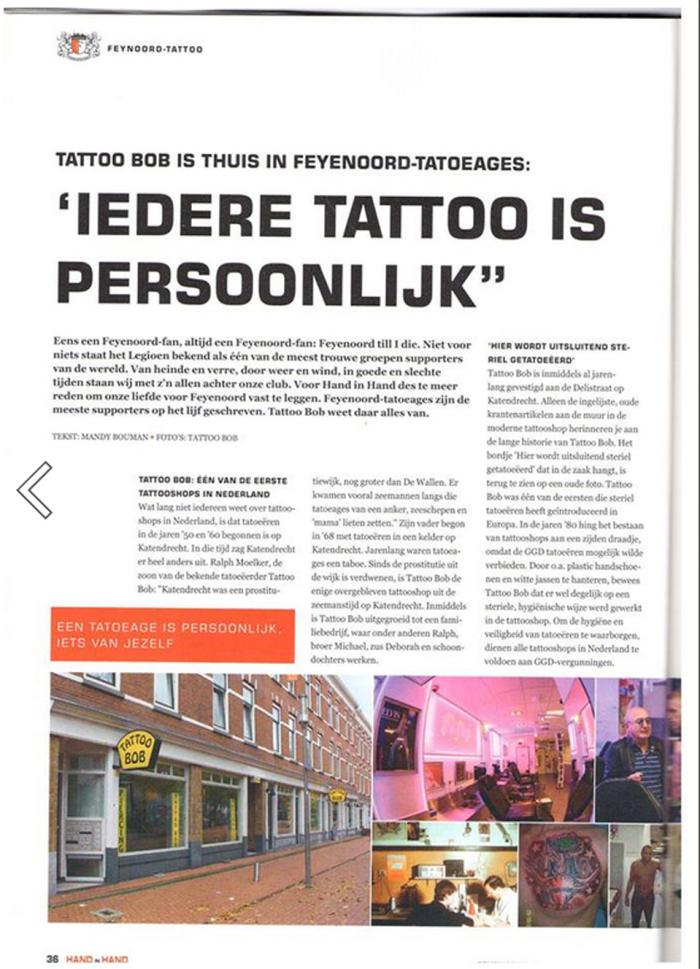 O.a Ulrich van Gobbel en vele spelers van Feyenoord heeft Bob voorzien van zijn Tattoos.