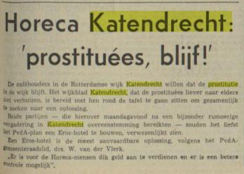 Begin jaren zeventig begon de oorlog om de prostitutie weg te krijgen. Dit ging gepaard met rellen en vechtpartijen. Tot begin jaren negentig was de prostitutie te vinden op Katendrecht. Toch zal er altijd met heimwee door een grote groep “Kapenezen” teruggekeken worden op deze periode.