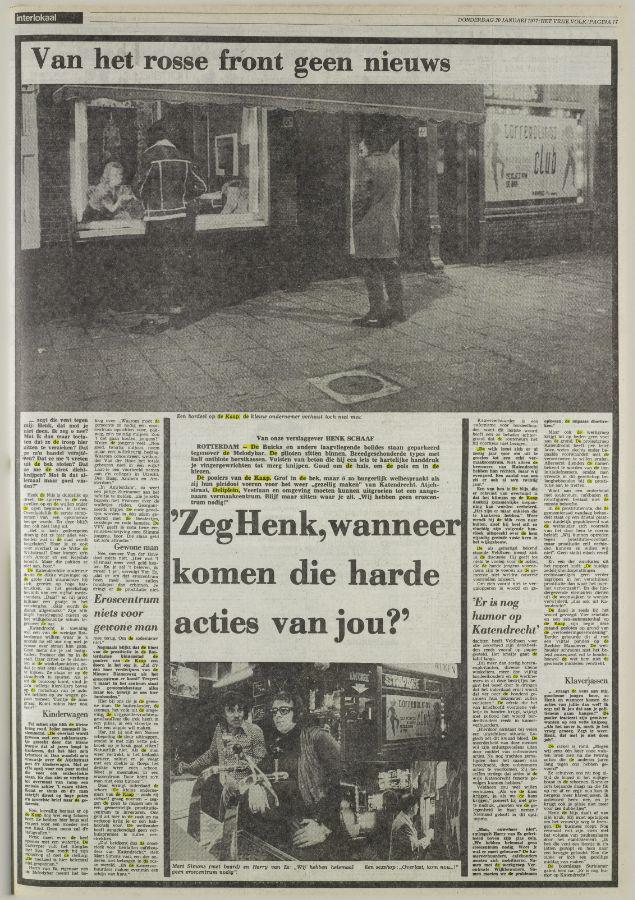 Het Rotterdamse gemeentebestuur liet het begaan, in de hoop de hele problematiek op deze ene locatie geïsoleerd te kunnen houden. Een gedeelte van de buurt stond knarsetandend toe te kijken. Uiteindelijk ontbrandde er een regelrechte oorlog tussen wijkorganisaties en pooiers. Het gebouw van het wijkorgaan ging in twee jaar tijd twee maal in vlammen op.