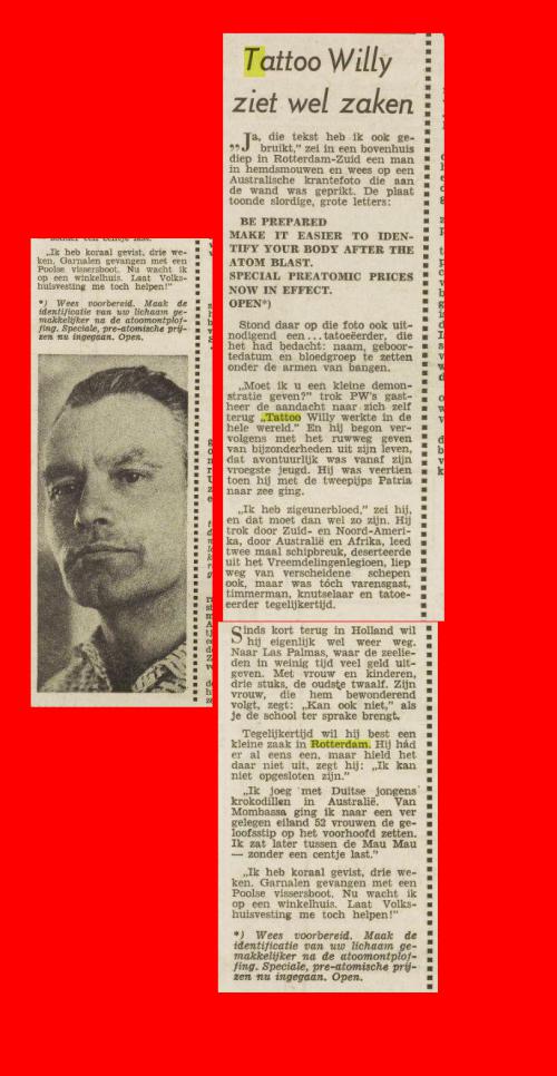 Deze naam "Tattoo Jack" werd in de jaren '60 en '70 wereldberoemd. Er zijn zeer weinig mensen die weten dat "Tattoo Jack " meerdere eigenaren heeft gehad..... Hieronder een artikel van deze Tattoo Jack uit 1966.