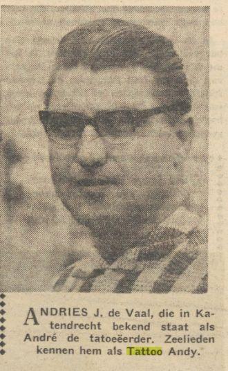 Het is onduidelijk wie daadwerkelijk de eerste Tattoo artiest was die Katendrecht bezocht... Dit is een Tattoo artiest waar zeer weinig over bekend is en waar men in de internationale Tattoo scene zijn bestaan niet eens van kent.... Dat is Tattoo Andre (voormalige zeeman) bij zeelieden bekend als "Tattoo Andy, zijn echte naam was Andries J. van de Waal.