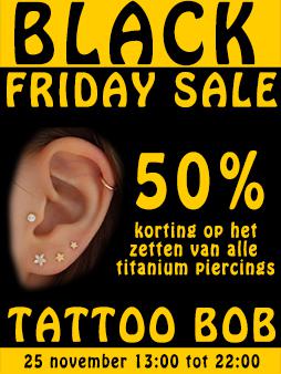 Wow! Dit is een unieke kans! Aanstaande vrijdag 25 november kun je titaniumpiercings met 50% korting plaatsen.