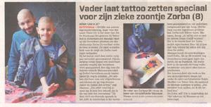 Vader laat tattoo zetten speciaal voor zijn zieke zoontje Zorba.