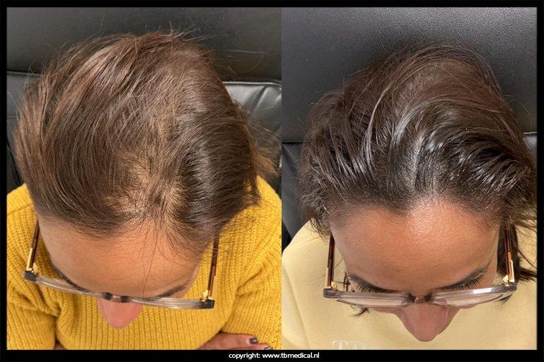 Eén van de meeste oorzaken van haaruitval bij vrouwen is stress. Als een gevolg hiervan ontstaan er plekken met dun haar. Deze plekken ontstaan voornamelijk in het gebied rondom de slapen. Deze kale plekken als een gevolg van haaruitval kunnen m.b.v. micro haar pigmentatie worden gecamoufleerd. Het resultaat? Optisch dikker haar.