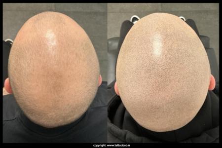 Nieuw en revolutionair! De stoppel tattoo. Met behulp van micro pigmentatie worden er stoppels op het kale hoofd getatoeëerd, welke niet van echt te onderscheiden zijn!